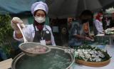 REPUBLIKA.CO.ID, SURABAYA -- Pelaku usaha kuliner mengemas jajanan untuk dijual di Jalan Rungkut Lor Gang II, Surabaya, Jawa Timur, Selasa (8/2/2022). Pemkot Surabaya meresmikan kampung yang memiliki 71 pelaku UMKM dengan hasil produksi berbagai macam jajanan tersebut sebagai Kampung Wisata Kue guna meningkatkan perekonomian warga.