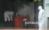 REPUBLIKA.CO.ID, JAKARTA -- Petugas menyemprotkan cairan disinfektan pada barang milik pasien COVID-19 di Graha Wisata TMII, Jakarta, Selasa (8/2/2022). Pemerintah Provinsi DKI Jakarta menjadikan Graha Wisata TMII sebagai tempat isolasi bagi pasien COVID-19 dengan kapasitas 41 kamar yang dapat menampung 100 pasien.