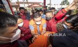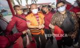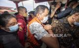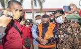 REPUBLIKA.CO.ID, PALEMBANG -- Tersangka kasus suap yang juga anggota DPRD Kabupaten Muara Enim Ishak Joharsah (tengah) tiba di Lapas Klas 1 Pakjo Palembang, Sumatera Selatan, Selasa (8/2/2022).