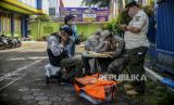 Petugas Satpol PP mendata warga yang tidak memakai masker di Jalan Minangkabau, Manggarai, Jakarta, Rabu (9/2/2022). Razia masker dilakukan untuk mendisiplinkan masyarkat dalam menerapkan protokol kesehatan khususnya penggunaan masker yang benar sebagai upaya mencegah penyebaran Covid-19 seiring terjadinya lonjakan kasus. (FOTO : Republika/Putra M. Akbar)