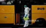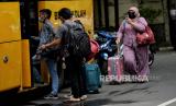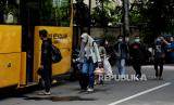 REPUBLIKA.CO.ID,JAKARTA -- Pasien Covid-19 menaiki bus untuk di evakuasi di Puskesmas Kecamatan Setiabudi, Jakarta, Rabu (9/2/2022).
