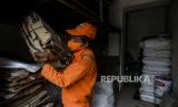 Petugas PPSU memilah sampah di Kantor Kelurahan Guntur, Setiabudi, Jakarta, Rabu (9/2/2022). Pemiliahan sampah tersebut untuk memilih sampah yang masih memiliki nilai jual dan meminimalisir pengiriman sampah di tingkat warga ke TPST Bantar Gebang. Republika/Putra M. Akbar (FOTO : Republika/Putra M. Akbar)
