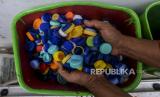 REPUBLIKA.CO.ID,JAKARTA -- Petugas PPSU menyimpah sampah tutup botol plastik di Kantor Kelurahan Guntur, Setiabudi, Jakarta, Rabu (9/2/2022).