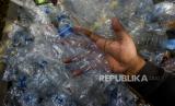Petugas PPSU memperlihatkan sampah botol plastik yang sudah diremukan di Kantor Kelurahan Guntur, Setiabudi, Jakarta, Rabu (9/2/2022). Pemiliahan sampah tersebut untuk memilih sampah yang masih memiliki nilai jual dan meminimalisir pengiriman sampah di tingkat warga ke TPST Bantar Gebang. Republika/Putra M. Akbar (FOTO : Republika/Putra M. Akbar)