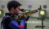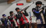 Penembak Indonesia Ali Nurrahman (kedua kiri) bersiap membidik sasaran dalam kualifikasi menembak nomor 10 meter Air Rifle Man pada ajang ISSF Grand Prix Rifle/Pistol di Lapangan Tembak Senayan, Jakarta, Rabu (9/10/2021). Kejuaraan menembak internasional ISSF Grand Prix Rifle/Pistol yang diikuti oleh enam negara dengan 138 atlet tersebut diselenggarakan di Lapangan Tembak Senyan, Jakarta pada 8-18 Febuari 2022. (FOTO : Antara/Galih Pradipta)