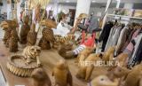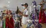 Pengunjung melihat produk kerajinan wayang yang dipasarkan di Pusat Kerajinan dan Kuliner Jawa Barat (Kerabat) Store, Jalan Ir H Juanda, Kota Bandung, Kamis (10/2/2022). Pemerintah Provinsi Jawa Barat menjadikan Kerabat Store Dekranasda Jawa Barat sebagai sarana pengembangan kreativitas sekaligus salah satu pusat pemulihan ekonomi bagi pelaku UMKM di 27 kabupaten/kota dengan memamerkan serta memasarkan produk unggulan khas Jawa Barat. Foto: Republika/Abdan Syakura (FOTO : REPUBLIKA/ABDAN SYAKURA)