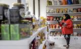 Pengunjung melihat produk kuliner yang dipasarkan di Pusat Kerajinan dan Kuliner Jawa Barat (Kerabat) Store, Jalan Ir H Juanda, Kota Bandung, Kamis (10/2/2022). Pemerintah Provinsi Jawa Barat menjadikan Kerabat Store Dekranasda Jawa Barat sebagai sarana pengembangan kreativitas sekaligus salah satu pusat pemulihan ekonomi bagi pelaku UMKM di 27 kabupaten/kota dengan memamerkan serta memasarkan produk unggulan khas Jawa Barat. Foto: Republika/Abdan Syakura (FOTO : REPUBLIKA/ABDAN SYAKURA)