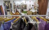 Pengunjung melihat produk fesyen yang dipasarkan di Pusat Kerajinan dan Kuliner Jawa Barat (Kerabat) Store, Jalan Ir H Juanda, Kota Bandung, Kamis (10/2/2022). Pemerintah Provinsi Jawa Barat menjadikan Kerabat Store Dekranasda Jawa Barat sebagai sarana pengembangan kreativitas sekaligus salah satu pusat pemulihan ekonomi bagi pelaku UMKM di 27 kabupaten/kota dengan memamerkan serta memasarkan produk unggulan khas Jawa Barat. Foto: Republika/Abdan Syakura (FOTO : REPUBLIKA/ABDAN SYAKURA)
