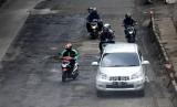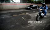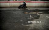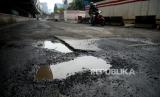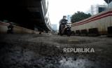REPUBLIKA.CO.ID, JAKARTA -- Kendaraan melewati jalan yang rusak di Jalan Rasuna Said, Kuningan, Jakarta, Ahad (13/2/2022). Salah satu jalan protokol ibukota tersebut mengalami kerusakan berlubang hingga bergelombang sehingga dapat membahayakan keselamatan pengendaraA