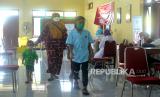 REPUBLIKA.CO.ID, BANTUL -- Pemeriksaan kesehatan siswa Siswa SD MI Sananul Ula Daraman sebelum mengikuti vaksin Covid-19 ke-2 anak di Kalurahan Srimartani, Bantul, Yogyakarta, Ahad (13/2/2022).