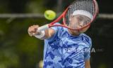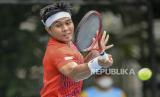 REPUBLIKA.CO.ID, JAKARTA -- Petenis Jawa Timur Muhammad Rifky Fitriadi mengembalikan bola ke arah lawannya petenis Papua Barat Achad Imam Ma'ruf dalam babak final Mandiri Tennis Open 2022 di Jakarta, Minggu (13/2/2022). Muhammad Rifky Fitriadi meraih juara pertama usai mengalahkan Achad Imam Ma'ruf dengan skor 6-2, 6-1.