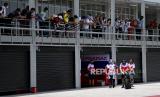 REPUBLIKA.CO.ID, LOMBOK TENGAH -- Warga menonton jalannya tes pramusim MotoGP 2022 hari terakhir dari perbukitan di sekitar Pertamina Mandalika International Street Circuit, Lombok Tengah, NTB, Minggu (13/2/2022). Tes pramusim MotoGP 2022 di Mandalika resmi berakhir pada Minggu (13/2) dan dilanjutkan balapan MotoGP seri Mandalika pada Maret mendatang.