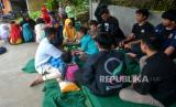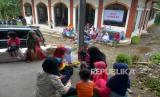 Anak-anak bermain bersama relawan di halaman Masjid Nurul Falah, Wadas, Purworejo, Jawa Tengah, Senin (24/2/2022). Relawan mengajak bermain anak-anak di Desa Wadas untuk menghilangkan trauma pascapenangkapan warga desa saat mujahadah pada Selasa (8/2/2022) lalu. Pascapenangkapan warga anak-anak mengalami trauma tidak mau keluar rumah dan takut bertemu aparat. (FOTO : Wihdan Hidayat / Republika)
