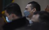 Terdakwa musisi I Gede Ari Astina atau Jerinx Superman is Dead (SID) mendengarkan keterangan saksi ahli saat menjalani sidang lanjutan kasus pengancaman melalui media elektronik kepada Adam Deni di Pengadilan Negeri Jakarta Pusat, Jakarta, Senin (14/2/2022). Sidang tersebut beragenda mendengarkan keterangan dua saksi ahli yang dihadirkan kuasa hukum terdakwa yakni ahli bidang Informasi Teknologi I Gusti Ngurah Agung Riyandi dan ahli filsafat hukum yang juga dosen FH UKI Petrus CKL Bello (FOTO : ANTARA/Indrianto Eko Suwarso)