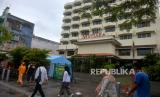 Hotel Mutiara 2 yang dijadikan tempat isolasi terpusat pasien Covid-19 di Malioboro, Yogyakarta, Selasa (15/2/2022). Hotel Mutiara 2 menjadi tempat isolasi terpusat (isoter) dengan kapasitas 112 tempat tidur yang dikhususkan warga yang tidak memiliki KTP DIY sehingga tidak tertampung oleh tempat isolasi di kabupaten/kota. Mereka, antara lain wisatawan, pegawai yang tengah berdinas, atau mahasiswa luar daerah yang kuliah di DIY. (FOTO : Wihdan Hidayat / Republika)