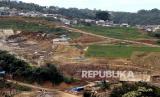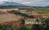 Pembangunan Bendungan Ciawi dan Sukamahi di Ciawi, Kabupaten Bogor, Jawa Barat, Selasa (15/2/2022). Menurut Kementerian Pekerjaan Umum Dan Perumahan Rakyat (PUPR) bendungan kering (dry dam) Ciawi dan Sukamahi secara keseluruhan telah mencapai 80 persen, sementara, pembebasan lahannya sudah 98 persen. (FOTO : Antara/Yulius Satria Wijaya)