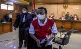 Terdakwa kasus pemerkosaan terhadap 13 santri Herry Wirawan berjalan keluar ruangan usai menjalani sidang vonis di Pengadilan Negeri (PN) Kelas IA Bandung, Jalan LLRE Martadinata, Kota Bandung, Selasa (15/2/2022). Majelis Hakim Pengadilan Negeri (PN) Kelas IA Bandung menjatuhkan vonis pidana seumur hidup kepada Herry Wirawan atas kasus pemerkosaan 13 santriwati sekaligus diminta membayar restitusi (penggantian kerugian) kepada para korban sebesar Rp331 juta. Foto: Republika/Abdan Syakura (FOTO : REPUBLIKA/ABDAN SYAKURA)
