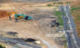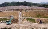 Proyek pembangunan tanggul di Tempat Pembuangan Sampah Terpadu (TPST) Piyungan, Bantul, Yogyakarta, Selasa (15/2/2022). Pemerintah Daerah Istimewa Yogyakarta berencana mengembangkan TPST Piyungan. Salah satunya dengan cara memperluas lahan, mengingat hingga 2023 TPST tidak mampu menampung pembuangan sampah. (FOTO : Wihdan Hidayat / Republika)