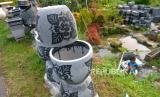 Pot tanaman dari teraso siap kirim di Ngablak, Piyungan, Yogyakarta, Selasa (15/2/2022). Penjualan dan pesanan teraso seperti pot bunga dan bak mandi mulai melambat sejak merebaknya virus Covid-19 Varian Omicron. Pengerajin berharap tidak ada penyekatan wilayah imbas Omicron. (FOTO : Wihdan Hidayat / Republika)