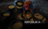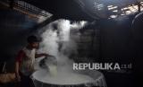 REPUBLIKA.CO.ID, TASIKMALAYA -- Pekerja memproduksi tahu di Kampung Kaung, Kota Tasikmalaya, Jawa Barat, Kamis (17/2/2022).