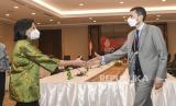 REPUBLIKA.CO.ID,JAKARTA -- Menteri Keuangan Sri Mulyani Indrawati berjabat tangan dengan Menteri Negara Urusan Keuangan Uni Emirat Arab Mohammed bin Hadi Al Husseini saat pertemuan bilateral di sela pertemuan tingkat Menteri Keuangan dan Gubernur Bank Sentral atau Finance Ministers and Central Bank Governors Meeting (FMCBG) Presidensi G20 Indonesia di Jakarta Convention Center, Jakarta, Kamis (17/2/2022).