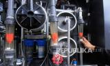 REPUBLIKA.CO.ID, Petugas kepolisian mengoperasikan kendaraan penyuling air bersih milik Brimob Polda NTT di halaman Polda NTT, di Kupang, NTT ,Jumat (18/2/2022). Brimob Polda NTT menyiagakan satu unit mobil penyulingan air bersih untuk ditempatkan di lokasi pengungsian jika terjadi bencana alam di NTT.