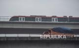 REPUBLIKA.CO.ID, JAKARTA -- Rangkaian kereta Light Rail Transit (LRT) Jabodebek berada di kawasan Stasiun LRT Cawang, Jakarta, Jumat (18/2/2022).PT KAI berencana mengoperasikan hingga 27 trainset LRT Jabodebek per hari.