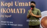 Ketua Dewan Pembina ISYEF Arief Rosyid memberikan sambutan saat meresmikan ISYEF Tower dan Kopi Umat (KOMAT) di Masjid Raya Al-Isra, Jakarta, Jumat (18/2/2022). ISYEF meluncurkan Isyef Tower dan Kopi Umat yang merupakan salah satu pusat pemberdayaan masjid dan komunitas remaja masjid melalui unit usaha kedai kopi, makanan dan minuman. (FOTO : Republika/Putra M. Akbar)