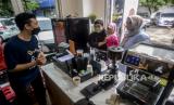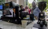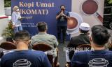 Pembeli menunggu pesanan kopi usai peresmian ISYEF Tower dan Kopi Umat (KOMAT) di Masjid Raya Al-Isra, Jakarta, Jumat (18/2/2022). ISYEF meluncurkan Isyef Tower dan Kopi Umat yang merupakan salah satu pusat pemberdayaan masjid dan komunitas remaja masjid melalui unit usaha kedai kopi, makanan dan minuman. Republika/Putra M. Akbar (FOTO : Republika/Putra M. Akbar)