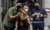 Direktur Bisnis dan Kewirausahaan Syariah Putu Rahwidhiyasa bersama Ketua Dewan Pembina ISYEF Arief Rosyid, Perwakilan Masjid Raya Al-Isra Ustaz Rizky, Ketua Umum ISYEF Atraz Mafazi dan Ketua Umum INKOWAPI Sharmila Yahya foto bersama usai peresmian ISYEF Tower dan Kopi Umat (KOMAT) di Masjid Raya Al-Isra, Jakarta, Jumat (18/2/2022). ISYEF meluncurkan Isyef Tower dan Kopi Umat yang merupakan salah satu pusat pemberdayaan masjid dan komunitas remaja masjid melalui unit usaha kedai kopi, makanan dan minuman. (FOTO : Republika/Putra M. Akbar)