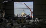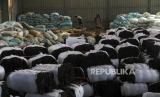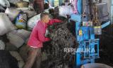 REPUBLIKA.CO.ID, BATAM -- Pekerja mengangkut rumput laut Rengkam (sargassum) kering menggunakan alat angkut di gudang penampungan KBC Pulau Nipah, Batam, Kepulauan Riau, Jumat (18/2/2022).