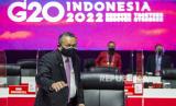 Gubernur Bank Indonesia Perry Warjiyo bersiap memimpin pertemuan hari kedua pada Pertemuan Tingkat Menteri Keuangan dan Gubernur Bank Sentral G20 atau Finance Ministers and Central Bank Governors (FMCBG) G20 di Jakarta Convention Center, Jakarta, Jumat (18/2/2022). Pertemuan Tingkat Menteri Keuangan dan Gubernur Bank Sentral yang merupakan rangkaian Presidensi G20 Indonesia dalam jalur keuangan tersebut membawa enam agenda prioritas, yakni exit strategy untuk mendukung pemulihan yang adil, pembahasan scarring effect untuk mengamankan pertumbuhan masa depan, sistem pembayaran di era digital, keuangan berkelanjutan, inklusi keuangan, dan perpajakan internasional. (FOTO : ANTARA/M Risyal Hidayat)