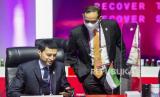 Presiden Asian Development Bank (ADB) Masatsugu Asakawa (duduk) berbincang dengan stafnya saat hari kedua Pertemuan Tingkat Menteri Keuangan dan Gubernur Bank Sentral G20 atau Finance Ministers and Central Bank Governors (FMCBG) G20 di Jakarta Convention Center, Jakarta, Jumat (18/2/2022). Pertemuan Tingkat Menteri Keuangan dan Gubernur Bank Sentral yang merupakan rangkaian Presidensi G20 Indonesia dalam jalur keuangan tersebut membawa enam agenda prioritas, yakni exit strategy untuk mendukung pemulihan yang adil, pembahasan scarring effect untuk mengamankan pertumbuhan masa depan, sistem pembayaran di era digital, keuangan berkelanjutan, inklusi keuangan, dan perpajakan internasional. (FOTO : Antara/M Risyal Hidayat)