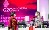 Menteri Keuangan Sri Mulyani Indrawati (kiri) berbincang dengan Wakil Sekretaris Departemen Keuangan Amerika Serikat Andy Baukol (kanan) saat hari kedua Pertemuan Tingkat Menteri Keuangan dan Gubernur Bank Sentral G20 atau Finance Ministers and Central Bank Governors (FMCBG) G20 di Jakarta Convention Center, Jakarta, Jumat (18/2/2022). Pertemuan Tingkat Menteri Keuangan dan Gubernur Bank Sentral yang merupakan rangkaian Presidensi G20 Indonesia dalam jalur keuangan tersebut membawa enam agenda prioritas, yakni exit strategy untuk mendukung pemulihan yang adil, pembahasan scarring effect untuk mengamankan pertumbuhan masa depan, sistem pembayaran di era digital, keuangan berkelanjutan, inklusi keuangan, dan perpajakan internasional. (FOTO : Antara/M Risyal Hidayat)