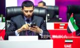 Menteri Negara Urusan Keuangan Uni Emirat Arab Mohammed bin Hadi Al Husseini mengoperasikan ponselnya saat hari kedua Pertemuan Tingkat Menteri Keuangan dan Gubernur Bank Sentral G20 atau Finance Ministers and Central Bank Governors (FMCBG) G20 di Jakarta Convention Center, Jakarta, Jumat (18/2/2022). Pertemuan Tingkat Menteri Keuangan dan Gubernur Bank Sentral yang merupakan rangkaian Presidensi G20 Indonesia dalam jalur keuangan tersebut membawa enam agenda prioritas, yakni exit strategy untuk mendukung pemulihan yang adil, pembahasan scarring effect untuk mengamankan pertumbuhan masa depan, sistem pembayaran di era digital, keuangan berkelanjutan, inklusi keuangan, dan perpajakan internasional. (FOTO : Antara/M Risyal Hidayat)