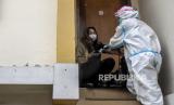 REPUBLIKA.CO.ID, BANDUNG -- Petugas Public Safety Center (PSC) 119 memeriksa kesehatan pasien Covid-19 bergejala ringan di Jalan Dago Pojok, Coblong, Kota Bandung, Jumat (10/2/2022).
