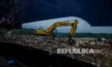 Petugas mengoperasikan alat berat untuk mengurai sampah di tempat pembuangan akhir sampah Sarimukti, Kabupaten Bandung Barat, Jawa Barat, Sabtu (19/2/2022). Walhi Jawa Barat mengharapkan pemerintah Indonesia di momentum Hari Peduli Sampah Nasional 2022 agar fokus pada pengelolaan sampah, sistem pengangkutan dan daur ulang sampah di Tempat Pembuangan Akhir tiap daerah agar tidak terjadi kelebihan kapasitas hingga terjadingan bencana longsor sampah yang merusak lingkungan. (FOTO : Antara/Novrian Arbi)