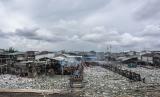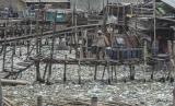 Warga berjalan di antara sampah di kawasan perkampungan nelayan Cilincing, Jakarta, Ahad (20/2/2022). Jelang peringatan Hari Peduli Sampah Nasional (HPSN) 2022, Pemprov DKI Jakarta mengajak warga Jakarta untuk peduli sampah mulai dari lingkungan terdekat minimal dengan cara memilah sampah dari rumah. (FOTO : ANTARA/Aprillio Akbar)
