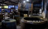 Suasana pabrik tahu saat aksi mogok di salah satu pabrik tahu di Sentra Industri Tahu Cibuntu, Babakan Ciparay, Kota Bandung, Senin (21/2/2022). Seluruh Industri Perajin Tahu di kawasan tersebut melakukan aksi mogok produksi mulai 21 Februari hingga 23 Februari akibat tingginya harga bahan baku kedelai yang mencapai Rp12 ribu per kilogram sehingga mengganggu biaya produksi dan harga penjualan tahu ke masyarakat. (FOTO : REPUBLIKA/ABDAN SYAKURA)