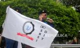 Massa menolak aturan JHT yang baru bisa dicairkan saat usia mencapai 56 tahun. .