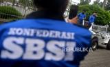 REPUBLIKA.CO.ID,YOGYAKARTA -- Konfederasi Serikat Buruh Seluruh Indonesia (SBSI) menggelar unjuk rasa di Dinas Tenaga Kerja dan Transmigrasi Provinsi DIY, Yogyakarta, Senin (21/2/2022).