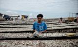 Jumlah produksi ikan asin turun 20 persen akibat terkendala cuaca saat penjemuran..