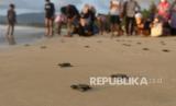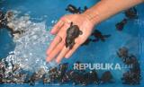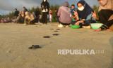 REPUBLIKA.CO.ID, ACEH BESAR -- Sejumlah warga yang tergabung dalam Lembaga Swadaya Masyarakat (LSM) Lingkungan, Seulanga Aceh bersama mahasiswa melepaskan tukik lekang (Lepidochelys olivacea ) di perarian pantai wisata Lhoknga, Kabupaten Aceh Besar, Aceh, Senin (21/2/2022).