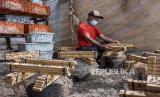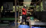 Warga mencacah sampah organik untuk pakan Maggot (larva) dari Lalat Black Soldier Fly (BSF) yang dibudidayakan di Rumah Maggot GEMI 0418, Cipageran, Kota Cimahi, Selasa (22/2/2022). Warga yang tergabung dalam kelompok Gerakan Ekonomi Mandiri (GEMI) berinisiatif membudidayakan maggot lalat BSF sebagai solusi pengurangan dan pengurai sampah serta upaya membantu perekonomian warga. Dalam satu bulan, maggot tersebut mampu mengurai sampah organik atau sampah rumah tangga yang berasal dari kawasan tersebut hingga tujuh ton sampah. Foto: Republika/Abdan Syakura (FOTO : REPUBLIKA/ABDAN SYAKURA)