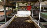Warga memilah Maggot (larva) dari Lalat Black Soldier Fly (BSF) yang dibudidayakan di Rumah Maggot GEMI 0418, Cipageran, Kota Cimahi, Selasa (22/2/2022). Warga yang tergabung dalam kelompok Gerakan Ekonomi Mandiri (GEMI) berinisiatif membudidayakan maggot lalat BSF sebagai solusi pengurangan dan pengurai sampah serta upaya membantu perekonomian warga. Dalam satu bulan, maggot tersebut mampu mengurai sampah organik atau sampah rumah tangga yang berasal dari kawasan tersebut hingga tujuh ton sampah. Foto: Republika/Abdan Syakura (FOTO : REPUBLIKA/ABDAN SYAKURA)