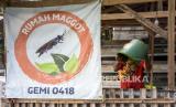 Warga memeriksa Lalat Black Soldier Fly (BSF) di kandang Rumah Maggot GEMI 0418, Cipageran, Kota Cimahi, Selasa (22/2/2022). Warga yang tergabung dalam kelompok Gerakan Ekonomi Mandiri (GEMI) berinisiatif membudidayakan maggot lalat BSF sebagai solusi pengurangan dan pengurai sampah serta upaya membantu perekonomian warga. Dalam satu bulan, maggot tersebut mampu mengurai sampah organik atau sampah rumah tangga yang berasal dari kawasan tersebut hingga tujuh ton sampah. Foto: Republika/Abdan Syakura (FOTO : REPUBLIKA/ABDAN SYAKURA)