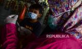 Petugas kesehatan menyiapkan vaksin Covid-19 untuk disuntikan kepada seorang anak di Pondok Pesantren Minhajurrosyidin, Jakarta, Selasa (22/2/2022). Satgas Penanganan Covid-19 mencatat pada Senin (21/2/2022), total penerima vaskin Covid-19 dosis lengkap di Indonesia telah mencapai 140.420.471 orang. Republika/Putra M. Akbar (FOTO : Republika/Putra M. Akbar)