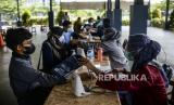 Petugas mendata warga yang akan disuntik vaksin Covid-19 di Pondok Pesantren Minhajurrosyidin, Jakarta, Selasa (22/2/2022). Satgas Penanganan Covid-19 mencatat pada Senin (21/2/2022), total penerima vaskin Covid-19 dosis lengkap di Indonesia telah mencapai 140.420.471 orang. Republika/Putra M. Akbar (FOTO : Republika/Putra M. Akbar)