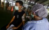 Petugas kesehatan menyuntikan vaksin Covid-19 kepada warga di Pondok Pesantren Minhajurrosyidin, Jakarta, Selasa (22/2/2022). Satgas Penanganan Covid-19 mencatat pada Senin (21/2/2022), total penerima vaskin Covid-19 dosis lengkap di Indonesia telah mencapai 140.420.471 orang. Republika/Putra M. Akbar (FOTO : Republika/Putra M. Akbar)