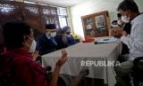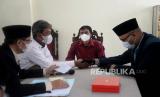 REPUBLIKA.CO.ID,JAKARTA -- Pasangan melangsungkan pernikahannya di KUA Tebet, Jakarta, Selasa (22/02/2022).